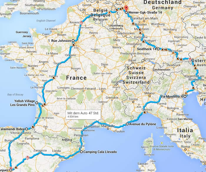 Meckenheim - Paris - Bordeaux - Madrid - Lloret de Mar (Costa Brava) - Antibes/ Juan-les-Pins (Cote d'Azur) - Venedig - Ulm - Meckenheim
